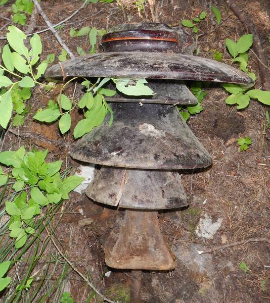 A totally new discovery ! A mahogany OB M-4321c Over the years a number of examples of the M-4321c have leaked out of Eastern Washington . most came from the inside of the Little Falls powerhouse but I have seen a scattering of damaged ones on old lines I have hunted . I have never before though seen even fragments of a mahogany one till now . this insulator was a replacement on a line that used all gray M-4321 victors I found the insulator it replaced nearby with massive flash over damage . So OB did indeed make a few brown ones . At this point though this one is a one of a kind . The glaze is clearly the early 1909-1910 era OB mahogany . There is a large OB marking embossed on the crown as with the few known gray ones . The inner skirt was split from cement expansion but will repair easily after I remove the pin and old cement ! ... finding something new is quite a thril! |