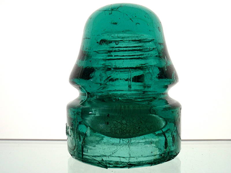 WOW!!! Three HUMUNGOUS bubbles inside this rich aqua CD 133.2 LAC PATD JULY 25TH 1865 P&W big signal. Eight scattered pencil lead point ticks, fingernail peck flake on the front wire ridge and the only bubble open to atmosphere is the front and its at the base. KILLER CHARACTER!! $ 395.00 includes shipping. |