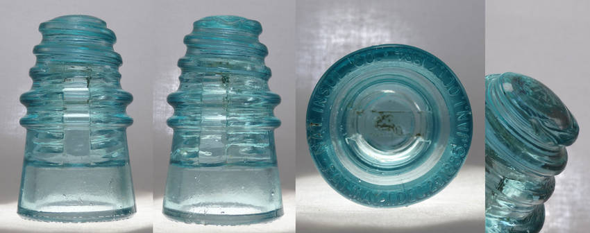 CD 110.5 National Insulator Co. EIN 010 - Beautiful light aqua with segmented threads. VNM condition. Small chip on dome edge and a tiny pencil-point nick on the lower wire-guide. Great piece. Purchased at 2017 National for $80 as a gift…but my daughter found a different piece she'd rather have. If I didn't already own one myself I would keep this beauty. For sale now for $80 plus shipping (mint versions were selling at the National for twice as much). Multiple pieces in box would reduce overall shipping. |