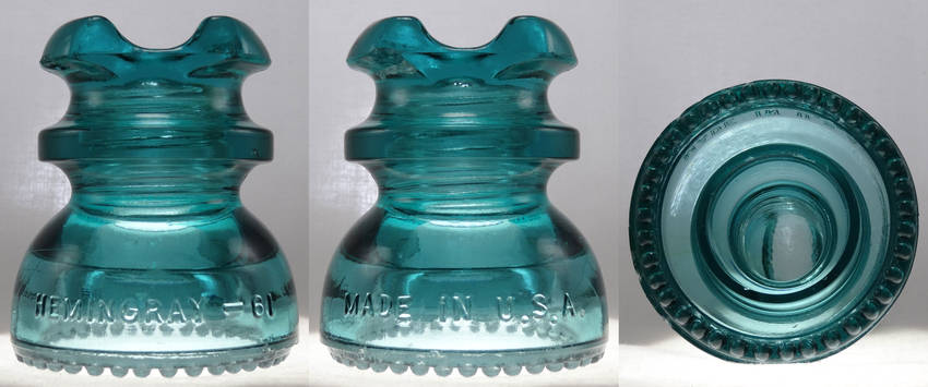 CD 251 Hemingray 61 EIN 010 - Aqua leaning toward Hemi-blue, NM condition. One 1/2" shallow chip under each ear. Displays great, beautiful color. Purchased at Enfield, CT show March 2013 for $20. For sale now for $10 plus shipping. Multiple pieces in box would reduce overall shipping. As a beginner collector 5 years ago or so, I appreciated being able to obtain these colors and CDs at an affordable cost. Over the years I have upgraded them and so it is now time to pass them down to newer collectors. I hope you enjoy them as much as I have. |