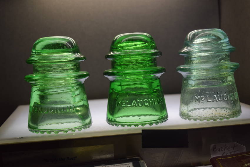 LEFT=CD 122 (010) APPLE GREEN McLAUGHLIN GLASS INSULATOR MINT MIDDLE CD 122 (010) DARK DEPRESSION GLASS GREEN McLAUGHLIN GLASS INSULATOR MINT FAR RIGHT CD 122 (010) LIGHT CITRINE McLAUGHLIN GLASS INSULATOR MINT ALL 3 FOR 1/2 BOOK VALUE 1ST $135 +1/2 ACTUAL SHIP COST USA ONLY LOWERED $100.00 |