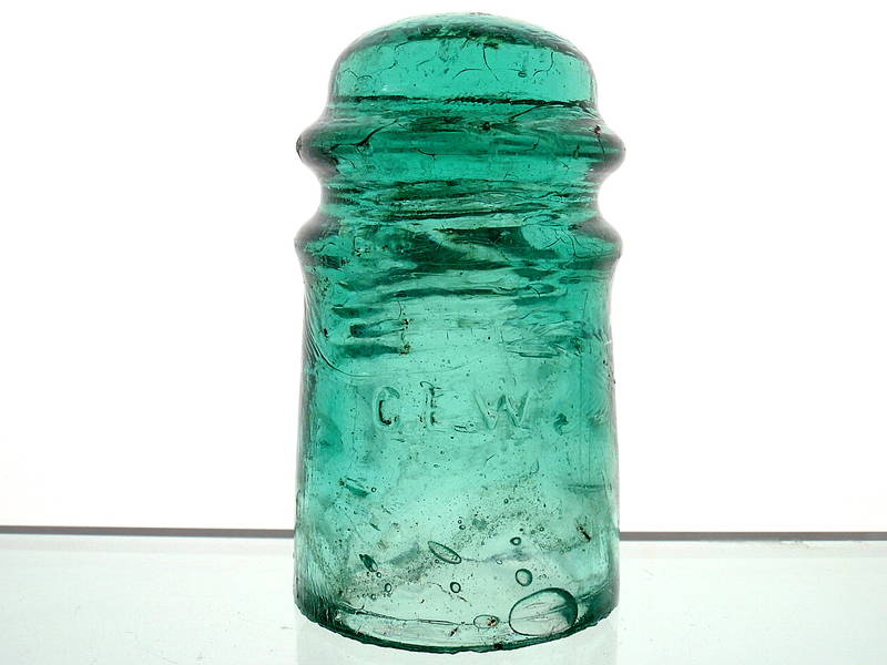 Sweet green aqua extra tall CD 120 C.E.W. Bubbles and steam swirls add character. 3 7/8" tall. Day one rear lower wire ridge fingernail size potstone star, rear base flat 3/4" flake and a rear skirt/base 3/4" chip flake are the only flaws!! High price guide value in this tough to find color!! $ 490.00 includes shipping. |