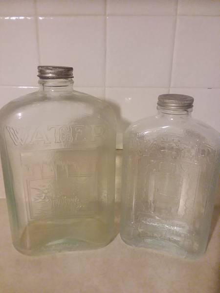 I found this 2 quart Hemingray water bottle at a local antique mall, for the low, low price of $9! I photographed it along side the standard size refrigerator bottle for comparison.