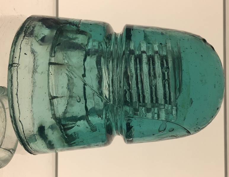 Nice pastel blue green color. Small, shallow flake on dome and short tight stress facture (vertical) from base extends 1". $40 and $10 Priority mail USPS US addresses. PP fine but use the gift option please. Thx! Call it $40 and that includes postage. |