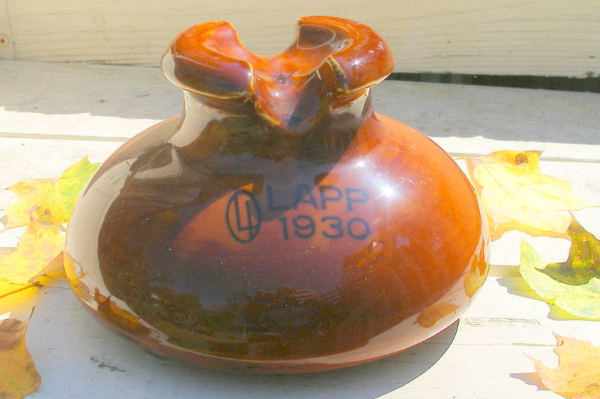 Old porcelain power piece. Condition is great with only a flake off one of the inner ribs underneath. How about $22.00 SHIPPED for this good looking old HEAVY son of a gun? Heck I might be LOSING money after I pay for shipping! LOL ALL forms of payment accepted! |