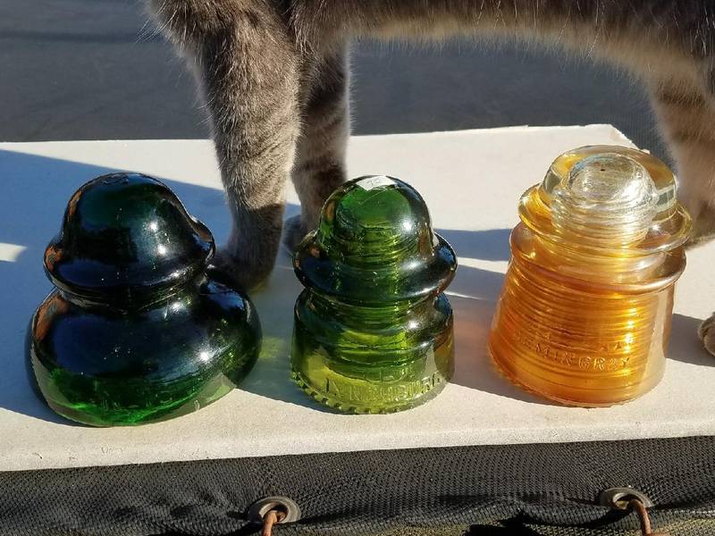 The left one is a NN CD 287 [020] in a very dark green. Can't say it is an olive green black glass. I would say a very dark yellow green. It has a hard to see internal crack behind the No 15 so $150 plus shipping to the lower 48. The middle one is a mint CD 164 Lynchburg in olive green. $75 plus shipping to the lower 48. On the right is a mint CD 142 for $50 plus shipping to the lower 48. Shipping elsewhere is extra. The feline is not for sale. No PayPal please. |