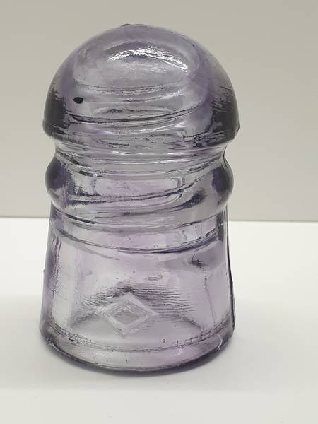 A tough to find CD 102 two tone Diamond insulator with backwards 9 on skirt base. This is clear with purple swirls. It has a small bruise on skirt. Additional pictures available. Asking $100 US.