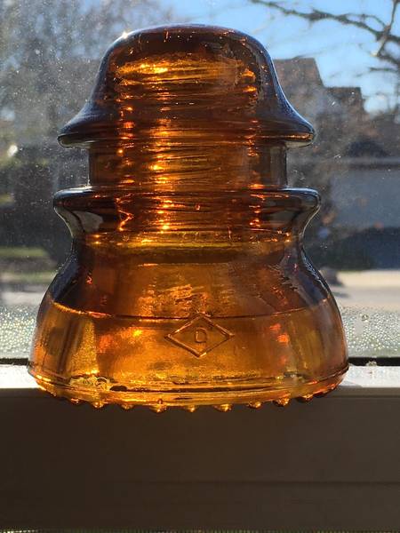 CD 154 (embossed on front) DOMINION - 42 (embossed on back) {D in a diamond}, round drip points, orange amber, very near mint with 2 dings on the inside skirt edge, surface mark on the front skirt, and a dome ding on the back. $140 postpaid in the U.S. PayPal Friends & Family, check, or money order. If outside the U.S., I'll have to get a postage quote. |