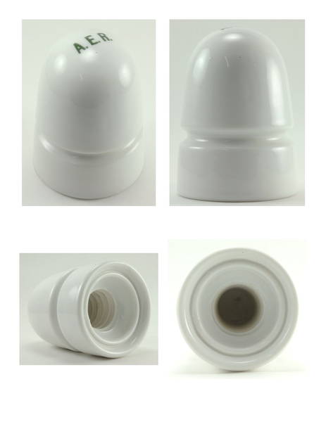 Bright, crisp white porcelain insulator. Dark green ink-stamped under-glaze "A.E.R." marking on dome. Probably impossible to improve on the condition. I am hesitant to call anything mint, but I don't see anything wrong here. $75.00 + $10.00 shipping to U.S.A. locations. PayPal No Fee mode preferred, but will accept other forms of payment. Thanks! |