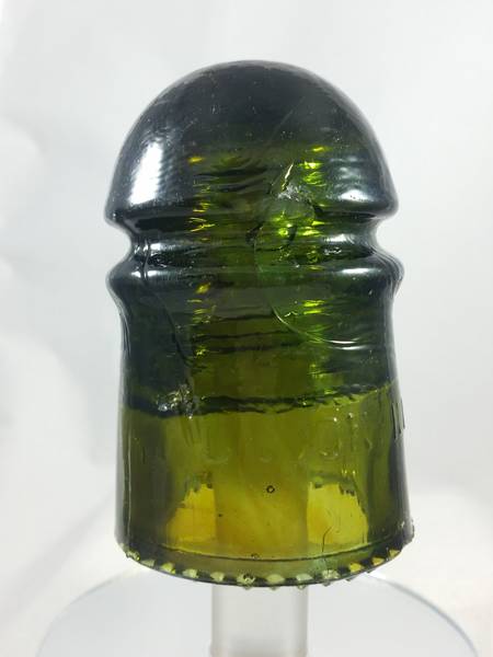 Here is a Brookfield CD 102 [030] in a dark olive green with amber swirls throughout. Small chip on the wireguide with a comma shaped bubble behind it, very small fish eye bruise below it (above and to the left of the B) on the skirt, about 8 drip points damaged. Asking $50 + shipping. More pictures on request. PayPal F&F or check OK. |