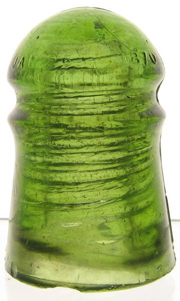 I have a gorgeous CD 102 [060] CREB in an unlisted color. I recently acquired this piece from an antique store locally in Minnesota and it needs to go to a new home! Color is a solid yellow green and the attached picture is very close to the actual color. There are several chunks of white and black junk within the glass as well as a base overpour and plenty of bubbles! This old soldier does have some damage- a small wire groove bruise and a small base flake, but it displays beautifully! I am asking $395 shipped to your front door in the continental USA for this rare piece. Please do not hesitate to contact me if you are interested or would like additional pictures. I do have additional pictures of the insulator as well as the damage it has. |