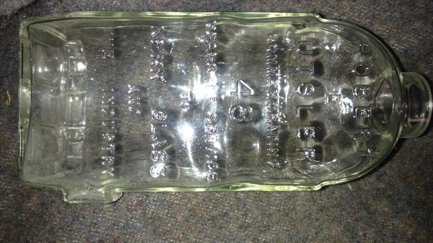 Here is a clear Bottle approx. 3" wide, 2 1/2" thick and 7 1/2" tall. It has flat side with the embossing Robert E. Utsler commemorating 48 years of service to Kerr glass and the industry. The reverse is convex. The side has two windows embossed on the shoulder and some architectural designs that look like the factory building. With window panels on sides. The base has two arched windows . This is the only one I have had. I Don't Know how many were made or exist. Asking $85 plus shipping. |