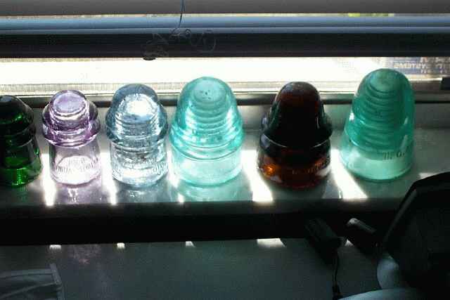 These are a couple of photos of the glass in the window by the computer. I look at them 4 or 5 times a day, usually when the sun is low in the ski and their colors show through. Someone asked me once, a long time ago, why I had them "all over the house, on shelves". This is the kind of collection that needs to be viewed, all the time, to be enjoyed. |