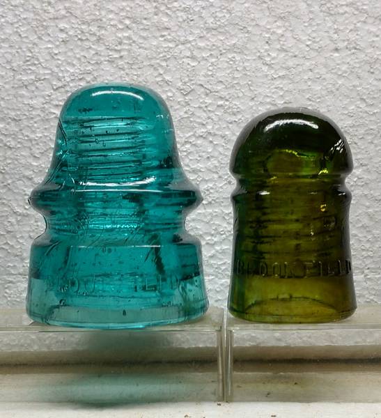 Picked these two at the antique mall sale . The 102 is a nice Yellow / Olive green with lots of amber #14 on the dome . The other is a 162 BF No 36 with lots of debris and bubbles with SN 12 .