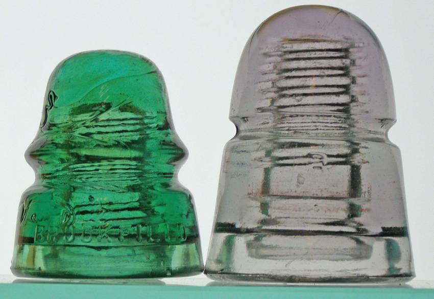 Two nice Brookfields as follows -- actual postage additional CD 160 -- BROOKFIELD // NEW YORK -- smooth base -- nice green -- tons of dome glass -- VNM (open bubble on base) -- $12 CD 145 B // B -- light purple / purple tint -- two small base flakes, minor rub on dome -- $25 |