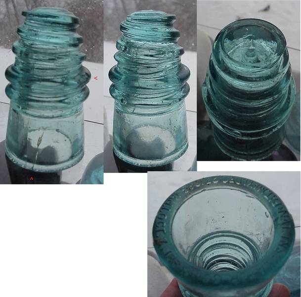1 on dome, standard treads. [050] Base embossing. Above average condition for one of these. A 1" skirt crack and wg ping {see arrows} . $90. + postage