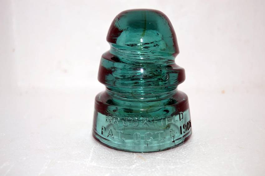 Listed is a very tough to fine CD 150 embossed Brookfield Pat. Oct. 8-1907 Insulator comes in aqua and looks mint to me but will say VVNM to be safe. I'm asking $650 plus actual shipping.