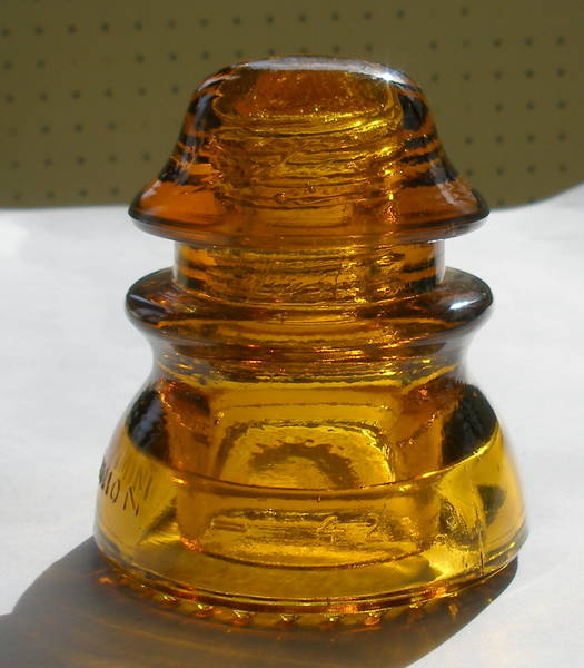 Offered up hear is an OUTSTANDING Dominion glass insulator in a gorgeous GLOWING Amber color. Condition on this beauty is, dare I say it...MINT. I see NO flaws! You'll NEVER need to upgrade this TOP SHELF piece. NOW I am asking only $140.00 AND that INCLUDES shipping to the lower contiguous States of America. I accept ALL forms of payment. View "ORIGINAL" for a better look! |