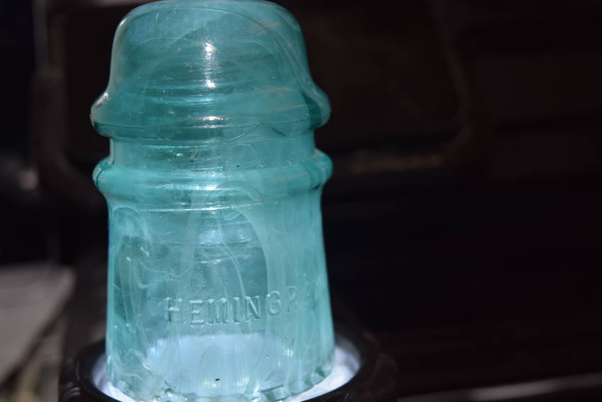 CD 121 (090) VERY MILKY AQUA HEMINGRAY has crack from base thru H IN EMBOSSING BUT MILK COVERS IT UP /very very milky 1st $50 +shipping to usa only