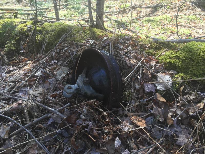 At the next pole site I noticed some porcelain poking through the leaves next to the moss covered pole. I uncovered the leaves and a complete hewlett disc with some hardware attached was revealed.. a rare sight indeed!!!