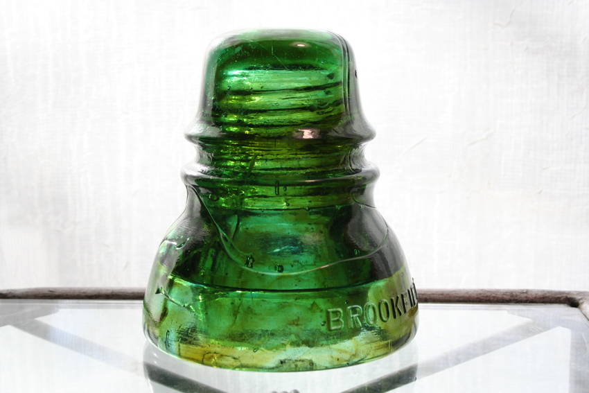 Super Junkie BROOKFIELD Hoopskirt $65 Insulator(s) are in good condition; notable damage is described. Nicks & flea bites are not described. If needed I can provide. Lot numbers help me track items they are not embossed with that number. First e-mail claim at my price gets the insulator. Send your zip with "I'll take it" so I can calculate shipping. I will respond with total. PayPal Friends preferred but checks & Money Orders are acceptable. This insulator has a lot of stuff in it: white fire brick in the dome, three globs of snot and a finger tip size skirt bubble . Damage consists of 6 small bruises to the inside of the skirt and a couple more to the inside of the petticoat. I never noticed the damage in the 10 years or so that I had this. |