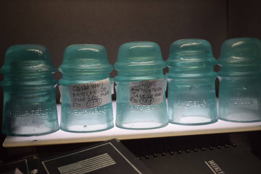 5 VERY NICE CD 121 (110) JADE GREEN MILK AM TEL &TEL CO GLASS INSULATORS 50% off 1ST $75 + ACTUAL SHIP COST USA ONLY