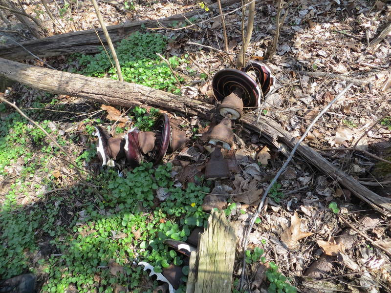 Here is what remains of the insulators. Apparently there used to be more unbroken ones here, but with it being right next to a walking trail, they were probably picked over by someone else.