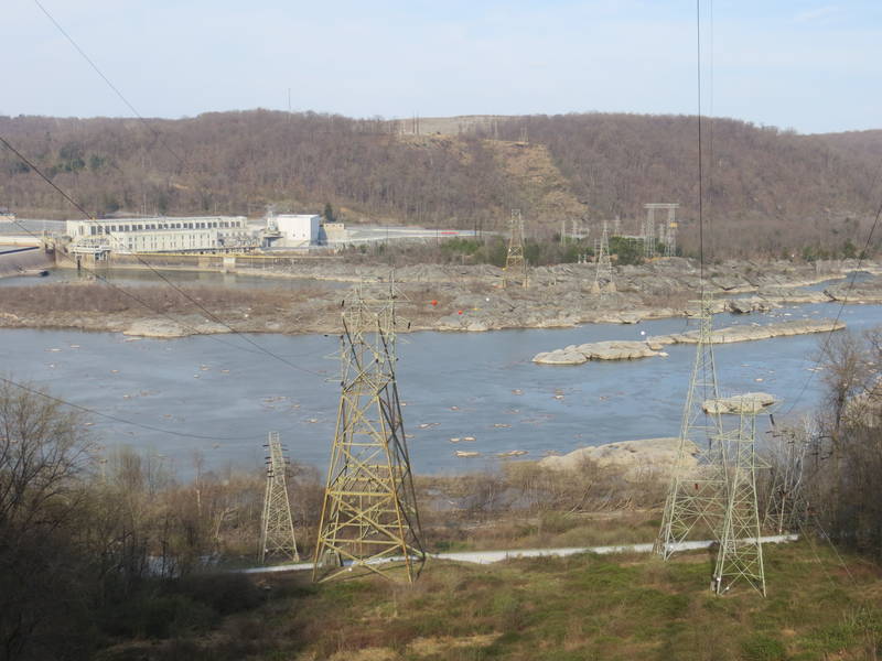 After not being able to access the next stop, we stopped a transmission project that was just starting, but found nothing on the ground their either. Evening was approaching and we were ready to give up hunting. I suggested that we might as well stop at the Holtwood dam as Tracy found stuff there in the past. We were 40 minutes away so we figured what the heck. Here is the powerhouse and transmission lines looking from the York County side of the river. |