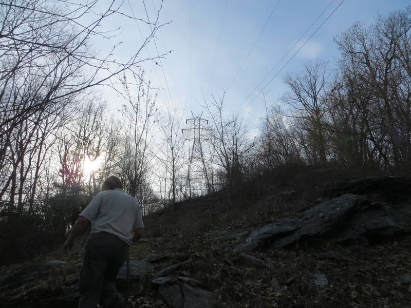 There is an old 69kv line that crossed under the ROW we hunted and ran sideways up the hill. We were halfway back to our cars and running out of daylight, so we decided to leave our finds and take the steep climb to the tower. This line has been out of service since around 2000 and was falling apart. Some of the wires and insulators were missing. That might be a good sign. |
