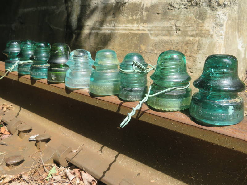 Starting from the left, A Brookfield CD 164, two Brookfield narrow dome CD 162.1's, green star CD 162, Whitall Tatum CD 163.4, Whitall Tatum CD 169, Hemingray CD 113, Lynchburg CD 162, and another 162.1 with some junk right behind the embossing. I realize it's nothing very valuable but I enjoy getting the exercise for a day and being surrounded by nature. I walked 8 miles, climbed numerous hills, and saw all sorts of animals and wildflowers! Any monetary value these things might hold for other people is completely irrelevant to me these days :) I collect purely for the fun of it! |