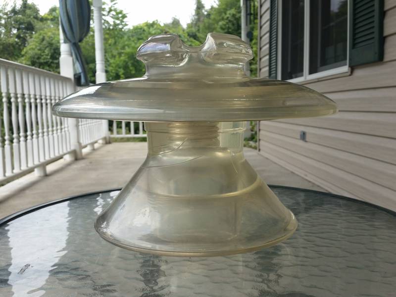 Picked this up at a garage sale today (actually the seller saw my ad in the paper and called me to let me know she had it at the sale). Small nick on the ear but otherwise nice shape. Seems to be straw colored with some iridescence on the top. Also bought a double oil lamp wall bracket and 2 oil lamps from her. |