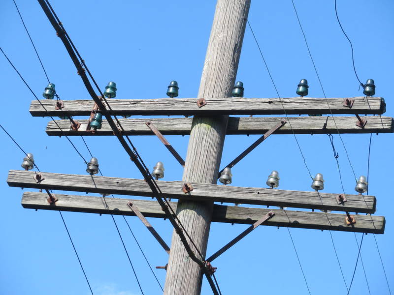 Brookfield signals on the top crossarm and Whitall Tatum No. 4's on the bottom.