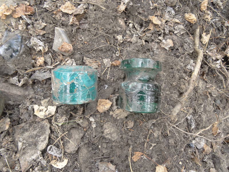 Dug up two large glass spools, one was a Brookfield product in a nice green and the other was a Brookfield or Hemingray in a great blue. Both have been broken pretty.