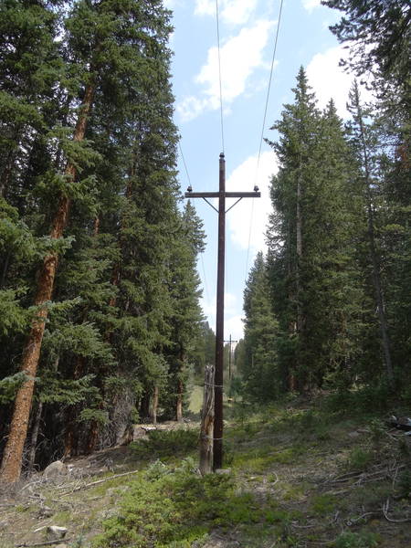 A portion of the Pittsburg line stands with short, stout poles still in service since 1908-1909 with mostly original construction. Copper conductors, butted poles, and pole top pins with the crossarm braces replaced. The crossarms also look newer.