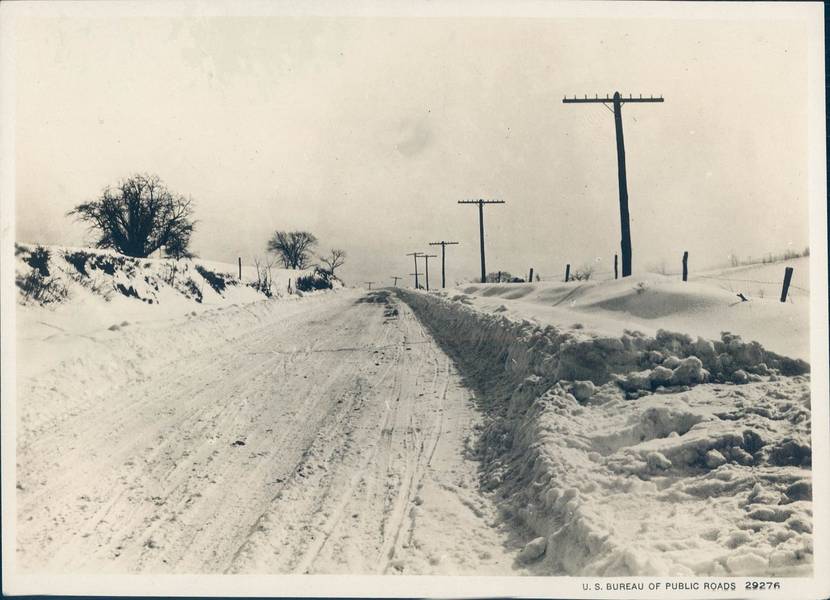 Snowy Rural Road with Telephone Openwire Lines, c.1924.