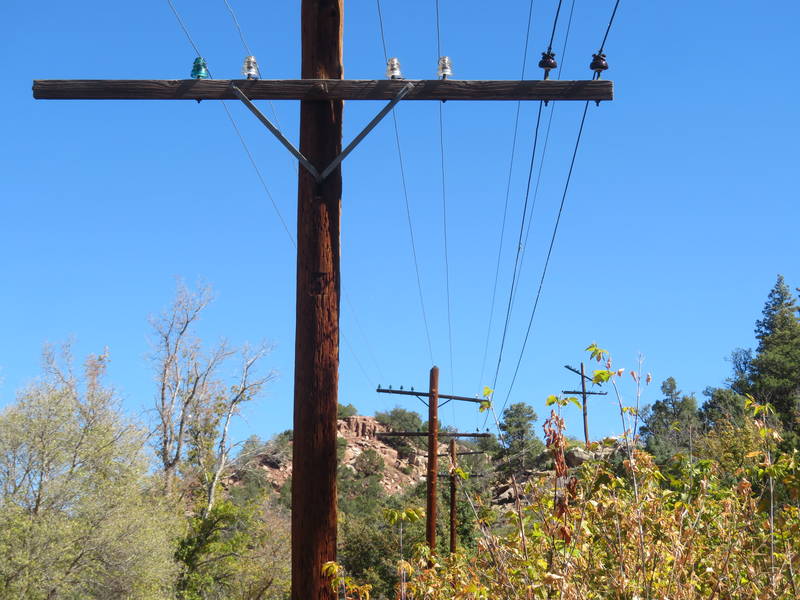 Pole line climbing over the hill