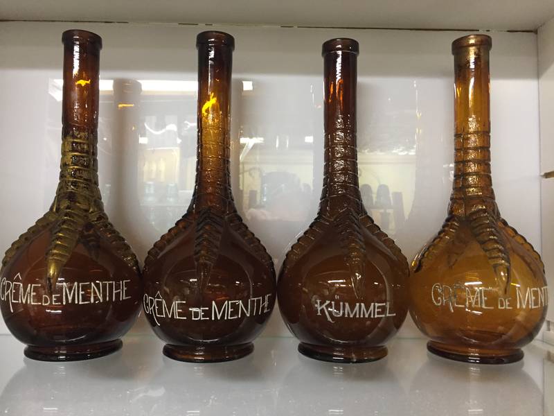 This Hemingray made bottle just arrived and has different vendor name "Kümmel" hand painted in the same "hand" as the Creme de Menthe examples I have....