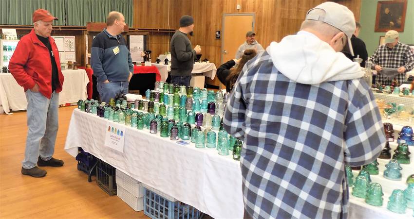 Doug MacGillvary talking with John Rajpolt as a prospective buyer peruses John's wares.