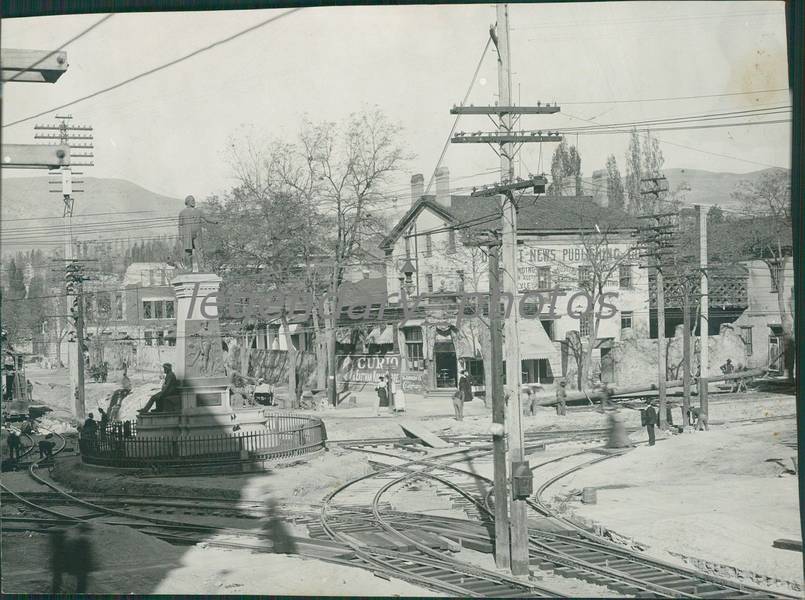 Salt Lake City, UT. c1910. City Streets Intersecting with Busy Openwire Pole Lines