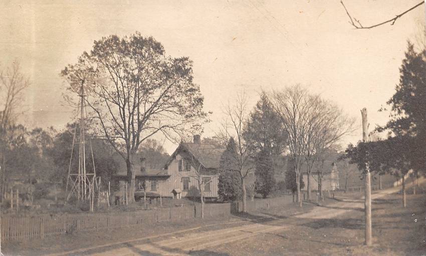 Milford, CT, 1912. Sidepin Openwire Phone Line Along Country Road, Old Homes