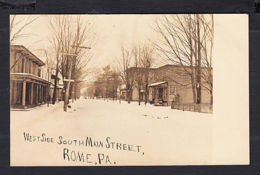 Rome, PA 1908. Snowy Village Center with Utility Poles and Openwire Lines.