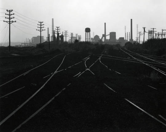 Kearney, NJ, 1973. Power Lines, Criss-crossing RR Tracks in Industrial Scene.