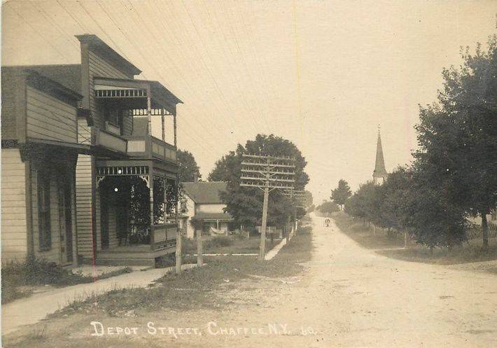 Chafee, NY c.1915. 10-Pin, 5-Crossarm Telephone Openwire Pole Line.