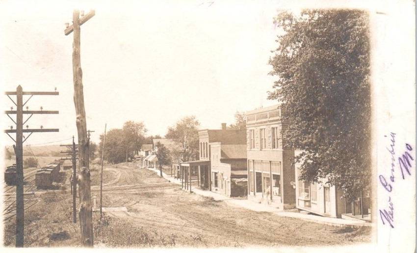 New Cambria, MO c.1910. 6-Pin, 3-Crossarm Telegraph Line Along Railroad.