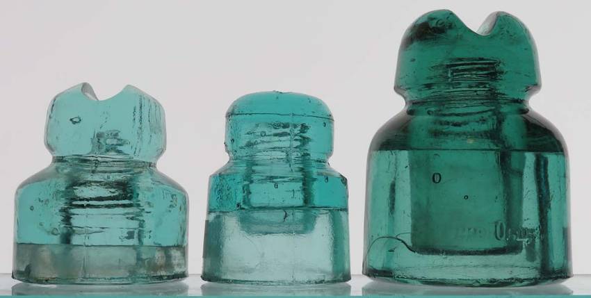 Three Russian insulators as follows - actual postage additional: CD 569.5 (tough style!) -- no markings -- flat base chip on back -- $25 (SOLD) CD 568.7 no markings -- skirt ping / flake -- $15 CD 579.5 ПИВ. ОБщ (Livengoff partnership of glass works) -- just light flaking around the base (likely factory) -- scarce insulator - very heavy glass -- $90 (SOLD) |