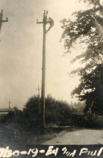 Location not known. This might have been during 1919 judging by the handwritten caption with Ed and Paul up there.
