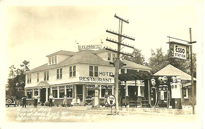 Bedford, PA c1930. Telephone Openwire Line with Poletop Extension at Roadside Stop