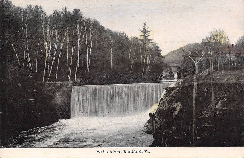 Bradford, VT c.1910. 4-Pin Electric Distribution Pole Line Near Waterfall.