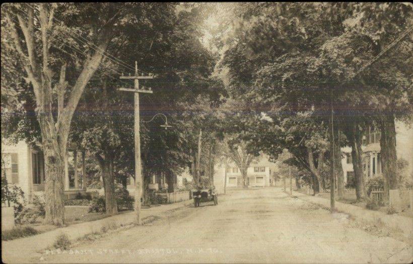 Bristol, NH c.1915. Electric Lighting Service Pole Line, Early Homes, Old Car.
