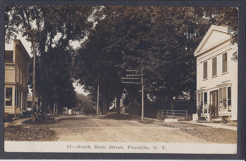 Franklin, NY c.1910. 4-Crossarm Alley Arm Phone Line, Electric Lighting Pole.